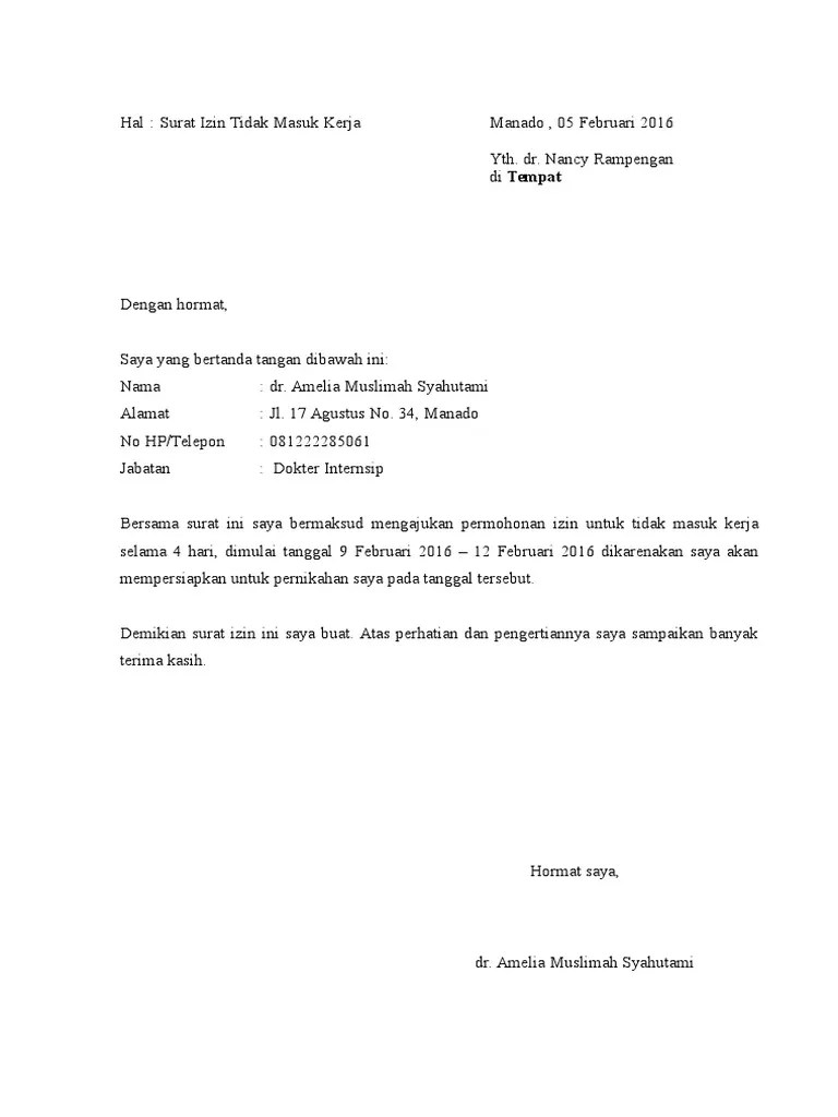 Ein Beispiel für izin tidak masuk kerja ist die Beantragung von Urlaub. Der Mitarbeiter stellt einen Antrag beim Arbeitgeber und gibt den gewünschten Zeitraum an. Der Arbeitgeber genehmigt den Urlaub in der Regel, sofern keine betrieblichen Gründe dagegensprechen.