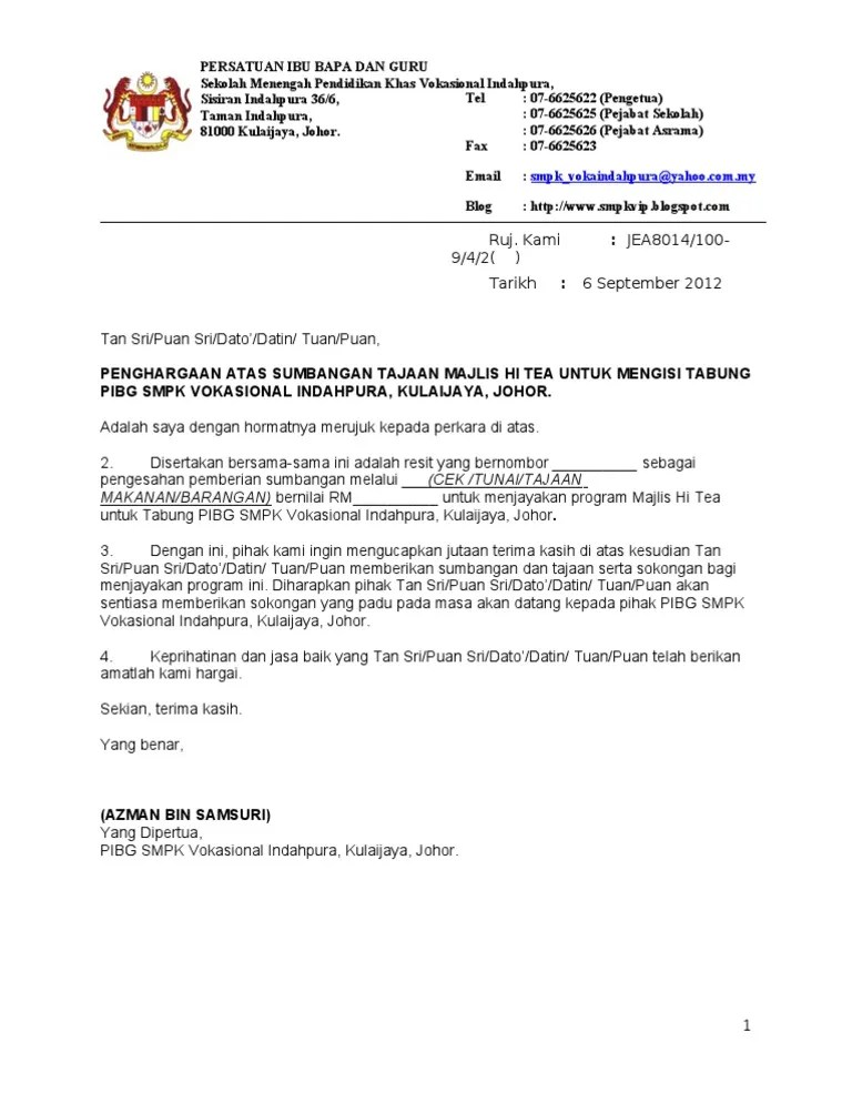 A "surat penghargaan atas sumbangan" is a formal document expressing gratitude for a contribution. For instance, a school might present a certificate to a local business that donated funds for new computers. Similarly, a volunteer organization could award certificates to individuals who dedicated their time to a community cleanup drive.